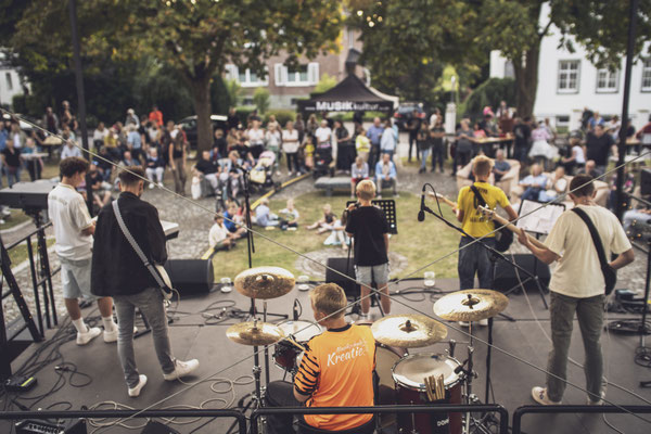 Auf dem Vorplatz des Museums Abtei Liesborn kann dann wieder den musikalischen Darbietungen unterschiedlicher Bands auf gemütlichen Sofas in einer einmaligen Atmosphäre gelauscht werden.